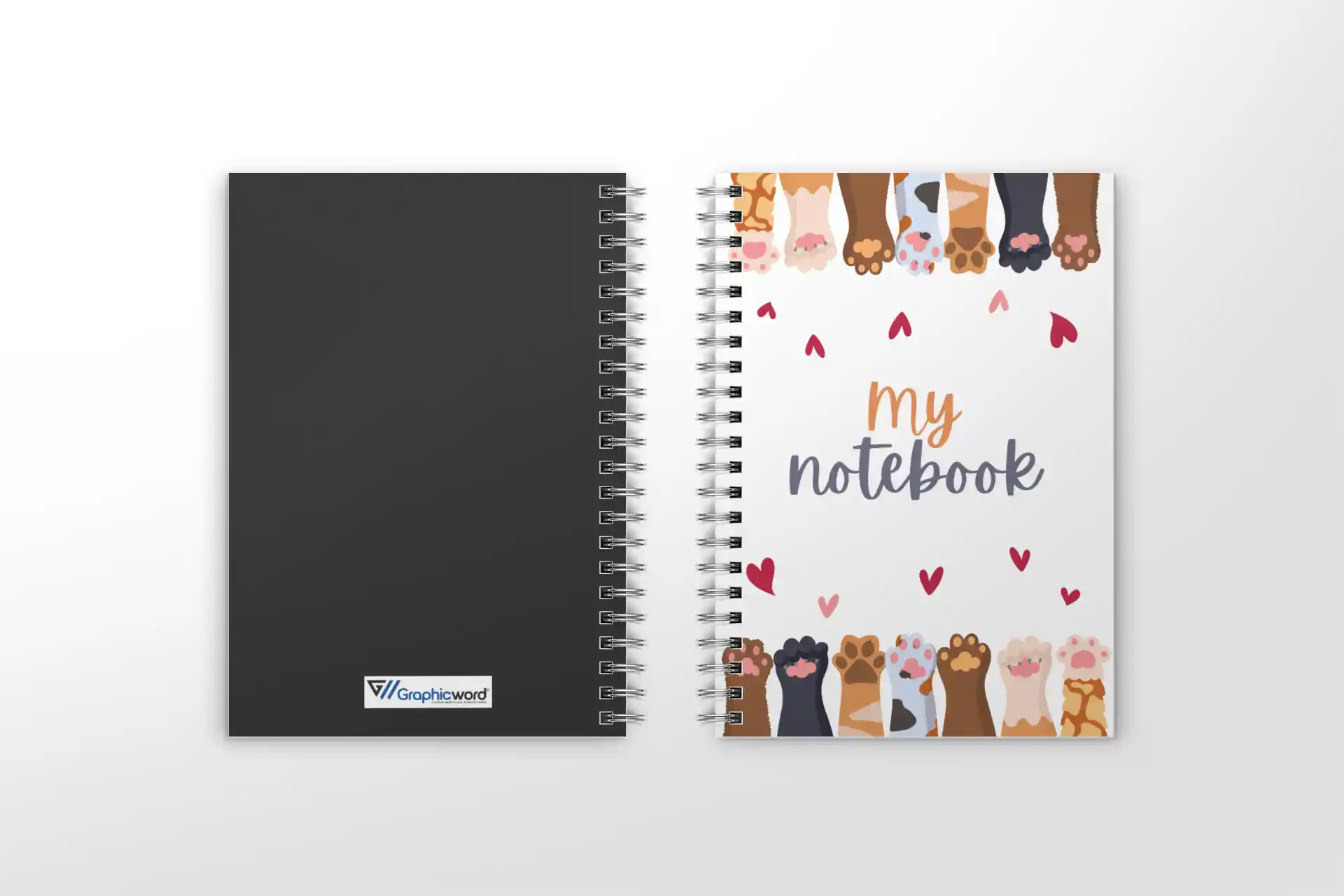 Add a touch of cuteness to your everyday notes with the Graphic Word Cute Cat Paw Print Spiral Notebook! Featuring an adorable white cover adorned with playful pink paw prints and hearts, this A5-sized notebook is perfect for cat lovers and stationery enthusiasts alike.